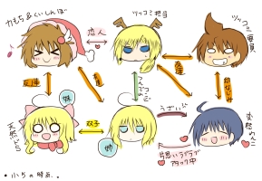 本編がまだアップしてないので 前日のの1コマ漫画の簡単な相関図。